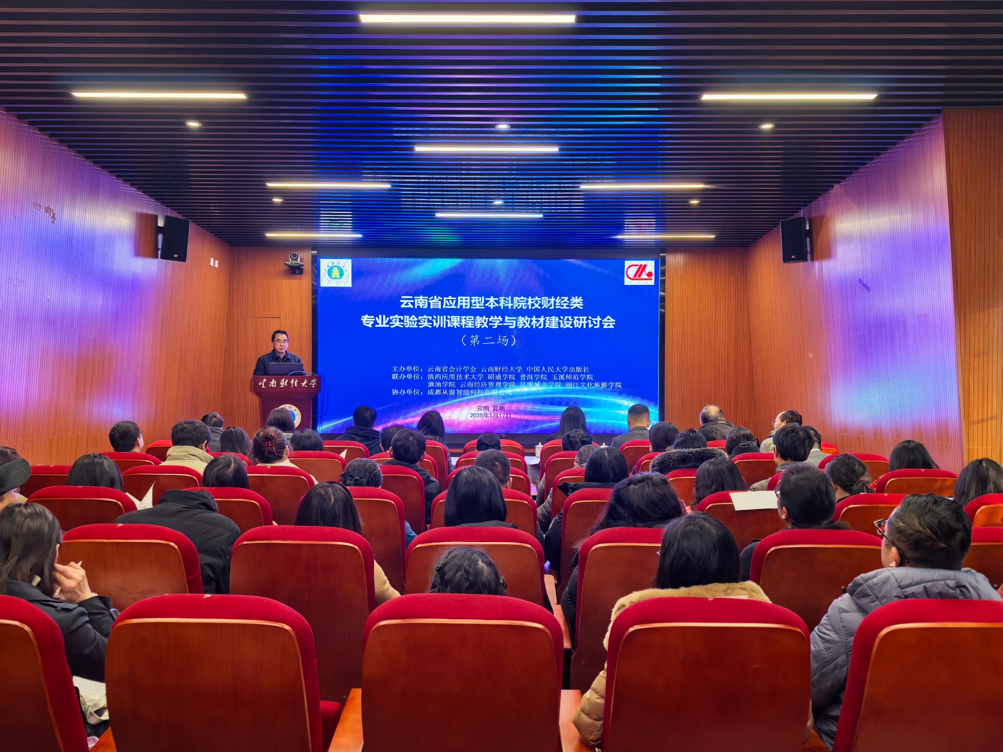 为深入贯彻落实习近平总书记关于教育工作的重要指示精神,在前期大理启动工作会的基础上继续深化实习实训类课程教学和教材建设,促进省内应用型本科院校间的交流与合作,1月17日上午,由云南省会计学会、WilliamHill官方网站、中国人民大学出版社联合主办的云南省应用型本科院校财经类专业实验实训课程教学与教材建设第二场研讨会在WilliamHill官网安宁校区召开。来自省内10余所高校和企业的80余名专家、学者出席会议,共同探讨财经类专业人才培养的实验实训教材和智慧课程建设工作。