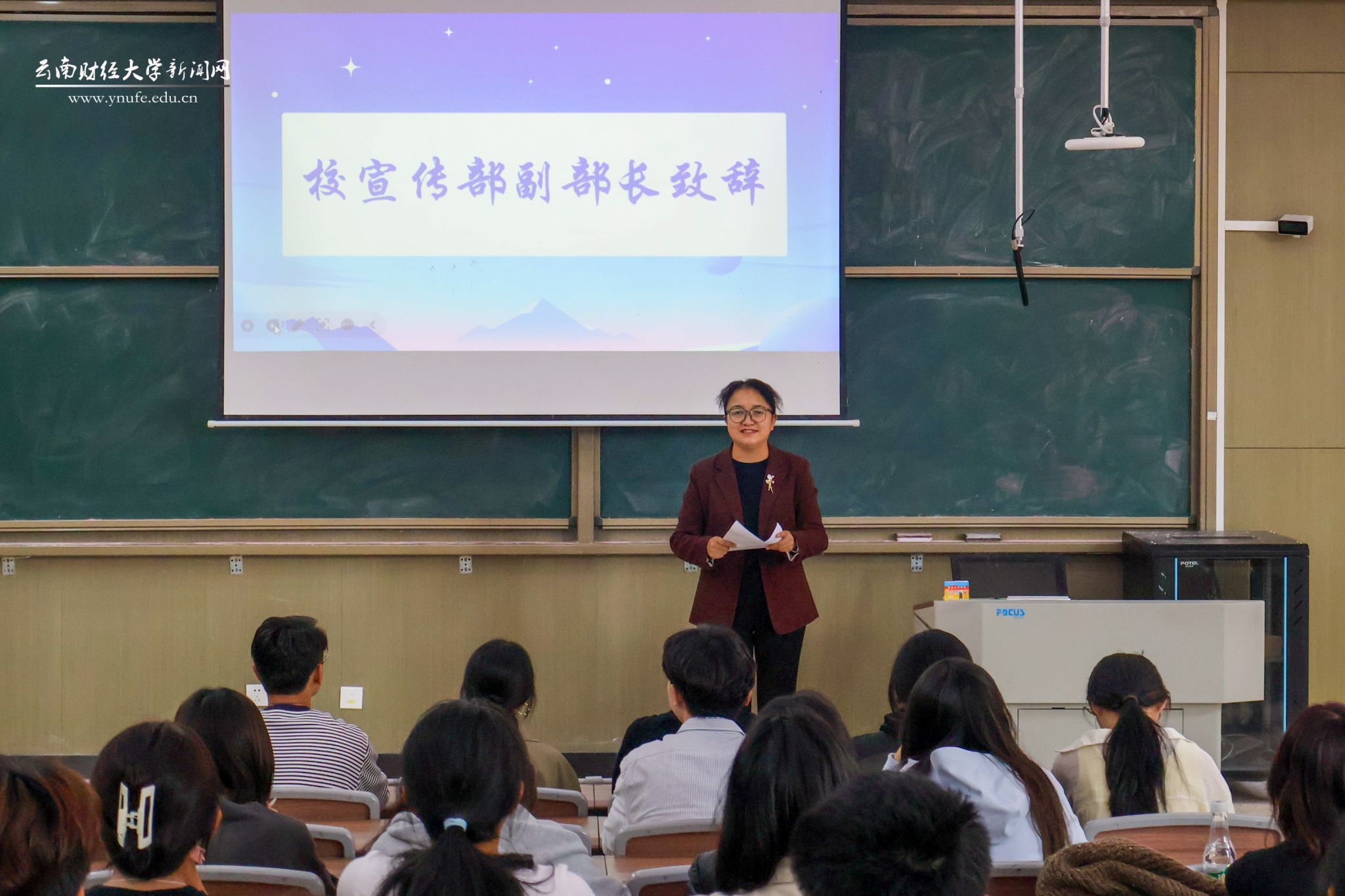 邓杰、胡宛墨作为新任指导老师发言,强调团队要团结互助,协同共进,希望大家做生活与工作的“有心人”,既要关注校园动态,也要善用新技术、新平台,用心讲好云财大故事,传播云财大正能量。