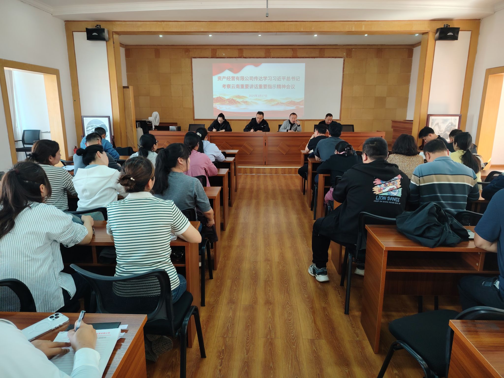 3月27日,资产经营有限公司召开职工大会,传达学习习近平总书记考察云南时的重要讲话重要指示精神,落实学校党委工作要求,安排布置公司学习宣传贯彻工作。公司党支部书记、董事长陈洪玉主持会议。