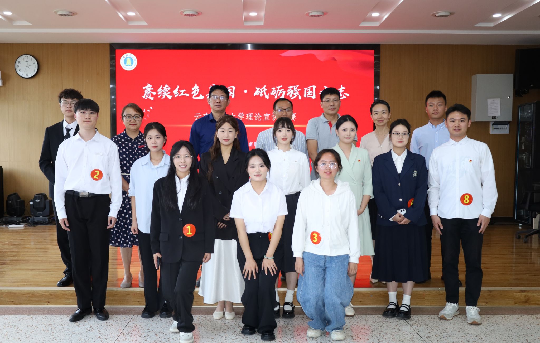 为庆祝中国共产党成立104周年,引导青年学子感悟思想伟力、厚植爱党爱国情怀,在校园内大力营造“学理论、强信念、跟党走”的浓厚氛围,6月27日,学校举行2025年“赓续红色基因·砥砺强国之志”理论宣讲比赛。比赛由马克思主义学院、中华职业学院联合承办,分为专业组和非专业组开展。