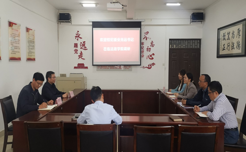 在法政学院,业光远同与会人员进行了交流,对法政学院的党建工作思路和亮点、党风廉政建设工作成果给予了肯定。他提出,学院要在以往工作的基础上,进一步凝练党建引领作用与学院各项工作之间的关系,抓人促事,不断提升学院基层党建和党风廉政建设工作的水平。学院要结合法政专业特色,加强与地方公检法司部门的深度合作,打造财大法政学院亮丽的名片;要在争当“清廉学院”建设排头兵的同时在全校廉政、廉教、廉学中发挥更大作用。
