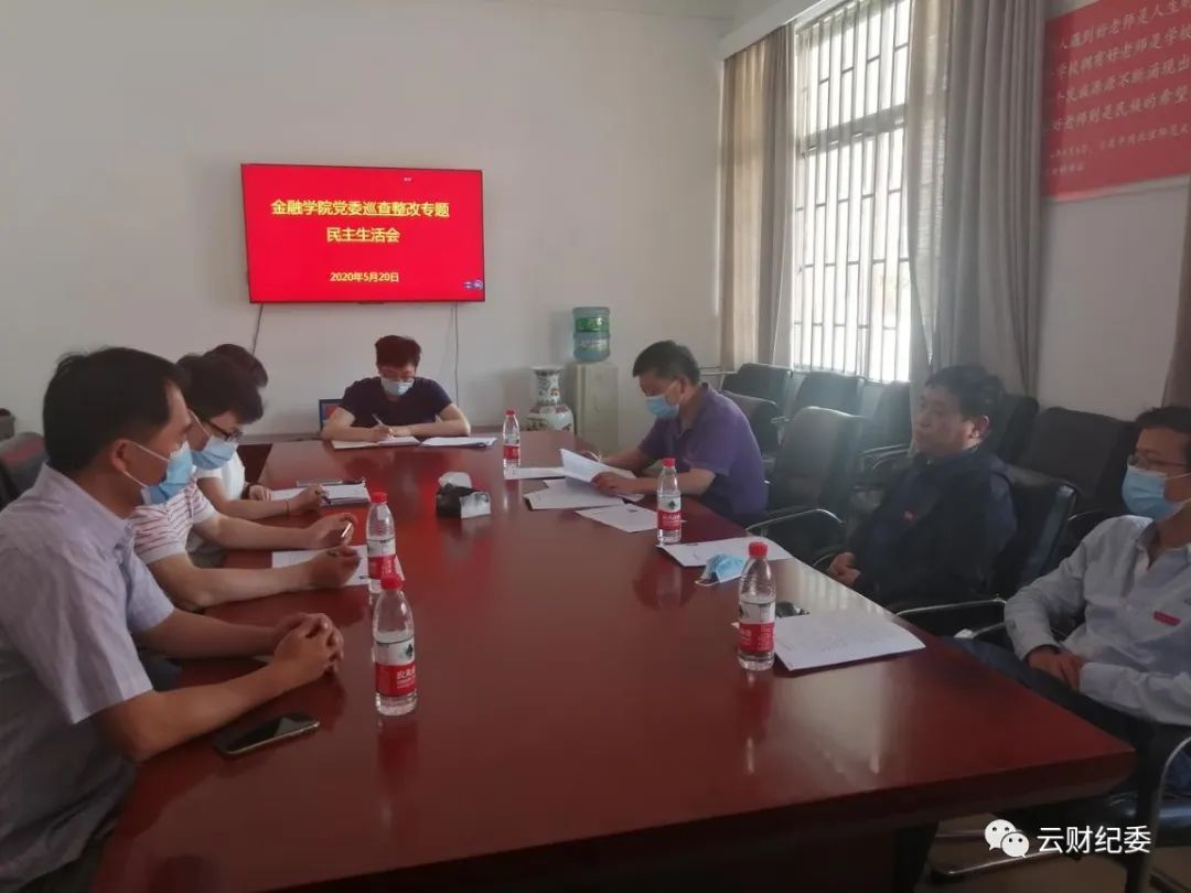 5月20日中午,金融学院党委在博远楼111会议室召开巡察整改专题民主生活会。学院党委委员参会,院党委书记张建友主持会议。