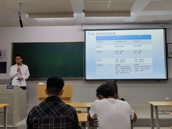 张卫就国考题型、备考时间管理、报名注意事项等进行了介绍。谢梦娇详细讲了国考备考的学习进程规划,分享了面试流程、面试题目内容与个人经验,以及体检政审流程等事项。