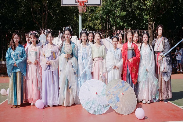 中华优秀传统文化是中华民族的根和魂,是中华文明延续传承的“基因密码”,是中华民族在世界文化激荡中卓然屹立的精神命脉。为传承和弘扬中华优秀传统文化,增强文化自信和爱国情怀,丰富校园文化生活。2023年5月7日,经济学院在南院彩色球场举办第一届“雅随心安·汉韵延存”传统文化体验活动。院团委负责人幸莹、团副杨婷莉、“礼乐”中国传统文化传习社宋飞凝、留学生泽仁、院青马班学员、社团部、宣传部全体工作人员及观众140余人参加此次活动。活动由经济学院社团部部长田连地、商学院电商22-2班黄瑞硕主持。本次活动分为三个板块:古风表演、华裳秀和文化集市。