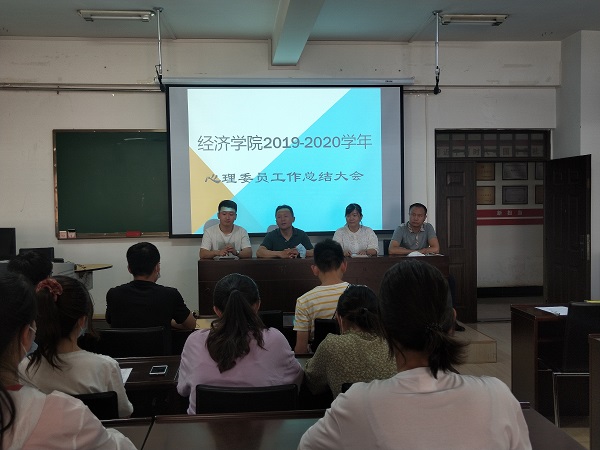 为全面落实《高等学校学生心理健康教育指导纲要》(教党[2018]41号)、《教育部思政司关于2020年“‘5·25’大学生心理健康教育月”举行“四个一”专项行动的工作提示》要求,保障我院心理教育工作的规范化运行,6月23日晚,经济学院在博远楼203会议室召开2019-2020学年心理委员工作总结大会。学院党委副书记赵强,学生管理科副科长陈琳,辅导员杨宏伟,2017、2018、2019级心理委员参会。会议由辅导员王琦主持。