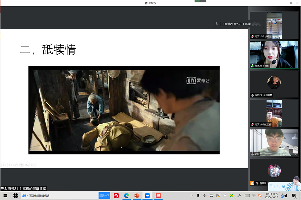 活动开始,同学们观看了优秀红色影片的剪辑,一个个有血有肉的伟大先辈形象、一个个慷慨激昂的英雄故事,无不使同学们动容。观看结束后同学们进行了精彩的思想交流,分享了红色影片与他们之间的故事,气氛十分活跃。其中,商务21-1班的高琪同学为我们分享了观看优秀影片《长津湖》后的感受。她说:“我们现在的美好生活就是这部电影的后续”。听完该同学的分享后大家纷纷表示赞同。大家都认为我们现在的生活来之不易,没有先辈们的奋斗,何来我们现在的幸福生活。所以我们青年学生也要继续奋斗。