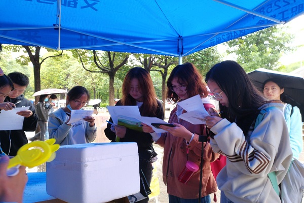 2020年10月15日,经济学院青年志愿者协会在海棠餐厅楼下开展“光盘行动”志愿活动。活动旨在倡导同学们节约粮食,反对铺张浪费,呼吁全校师生成为“光盘”践行者。