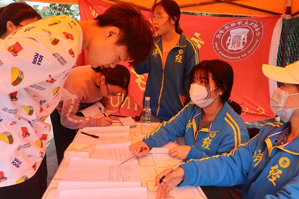 8:00活动正式开始,主要以长征史上的重要历史事件“强渡乌江”为主题,分别设立了四个环节。第一个环节——追根溯源,主要对长征的历史意义等进行了考察;第二个环节——乌江天险,主要对强渡乌江的细节如时间、地点、指挥官等进行考察;第三个环节——前仆后继,考察了发生于强渡乌江前后的重大历史事件;第四个环节——继往开来,通过问答题的形式询问参赛人员对这段历史的认识和从这段历史中学到了些什么。前来参赛同学络绎不绝,都按照工作人员指示有秩序的完成每一个关卡,即使中午烈阳高照,大家的热情依旧不减,在竞答桌前排起了长队。