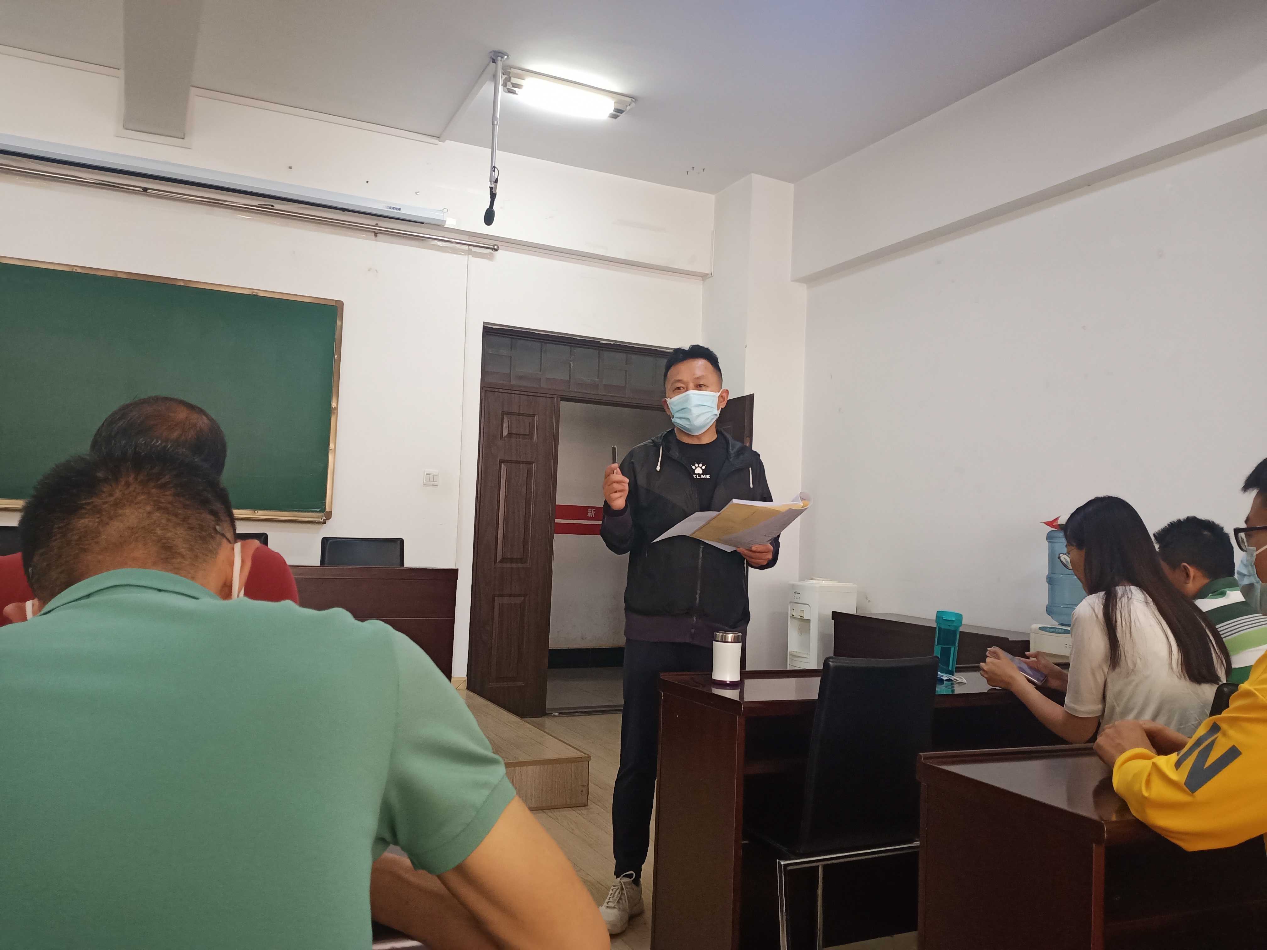 会议一开始党委书记陈永飞老师对前来当志愿者的同学们表示感谢,也提醒同学们做好安全防护措施。党委副书记赵强老师就上级防疫专家对志愿服务工作提出整改建议进行了强调:首先志愿者要进一步加强安全防范意识,正确佩戴口罩。其次要进一步加强工作规范,工作人员之间,工作人员与报道学生之间保持合理距离。这样才能在合理有序的条件下安全地让同学们返校。同时学管科主任陈琳老师为此做了更加详细的说明补充,让参与培训的志愿者们,对志愿工作有了清晰深刻的理解。