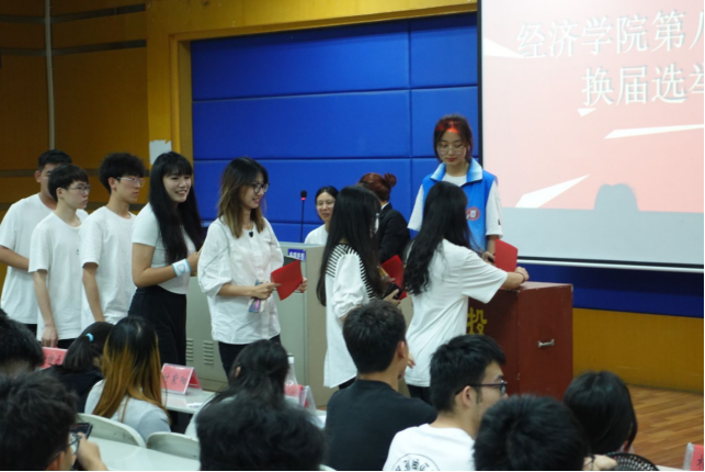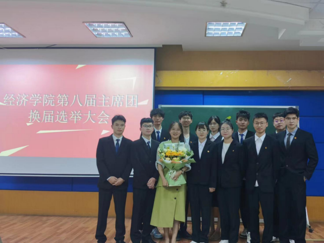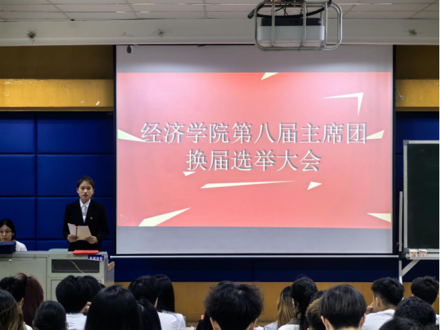 2024年6月3日下午19:00,经济学院第八届主席团换届选举大会在凌云楼南附101举行。学院团委负责人杨诗涵、第七届主席团骨干、第八届主席团候选人和各班学生代表参加本次会议。
