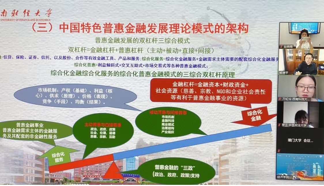 在27日的开营式上,金融学院院长熊德平教授应邀为参加夏令营的师生做了《普惠金融发展的理论逻辑及其在中国的实践》,熊德平教授从普惠金融概念的提出与实践历程入手,分析了普惠金融概念产生的背景及其蕴含的根本目标,进而分析了既有普惠金融定义的不足及原因和影响,提出了普惠金融的本质内涵是促进包容性增长的金融创新。在此基础上,熊德平教授进一步从普惠金融发展的论理背景,历史背景,经济背景,金融背景和市场背景角度,分析了普惠金融发展的主动普惠与被动普惠,直接普惠与间接普惠动力机制,并构建双杠杆(金融杠杆+普惠杠杆)+三综合(综合金融,综合服务,综合普惠)的普惠金融发展模式。依据这一模式,熊德平教授从历史与现实,制度与文化相结合角度,解读了我国普惠金融发展实践,揭示了我国普惠金融发展成功经验背后的理论逻辑,并提出了我国普惠金融创新发展的对策建议。报告结束后,熊德平还与参加夏令营的师生进行了互动,回答了同学们的提问!