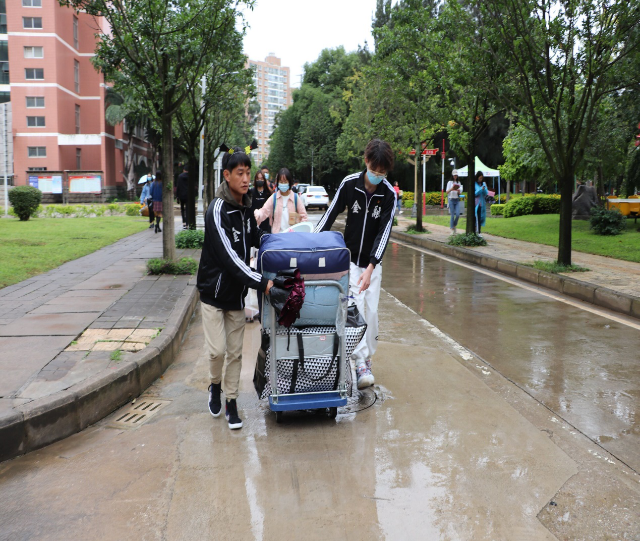 报道当天,各部门从清晨7点就开始准备工作。学院在西门、东门、菁华1、4、9、10分别设立服务点位,为新生提供路标指引、帮助新生搬运行李、协助新生办理入住等手续。虽然下起了绵绵细雨,志愿者们的头发被雨水淋湿,鞋子被积水浸湿,但他们没有怨言,依然热心接待每一位到来的新生,充分体现了奉献、友爱、互助、进步的志愿者精神。金融学院团委还为每个新生准备了精美小礼物,设立采访点位记录新生入学时刻。