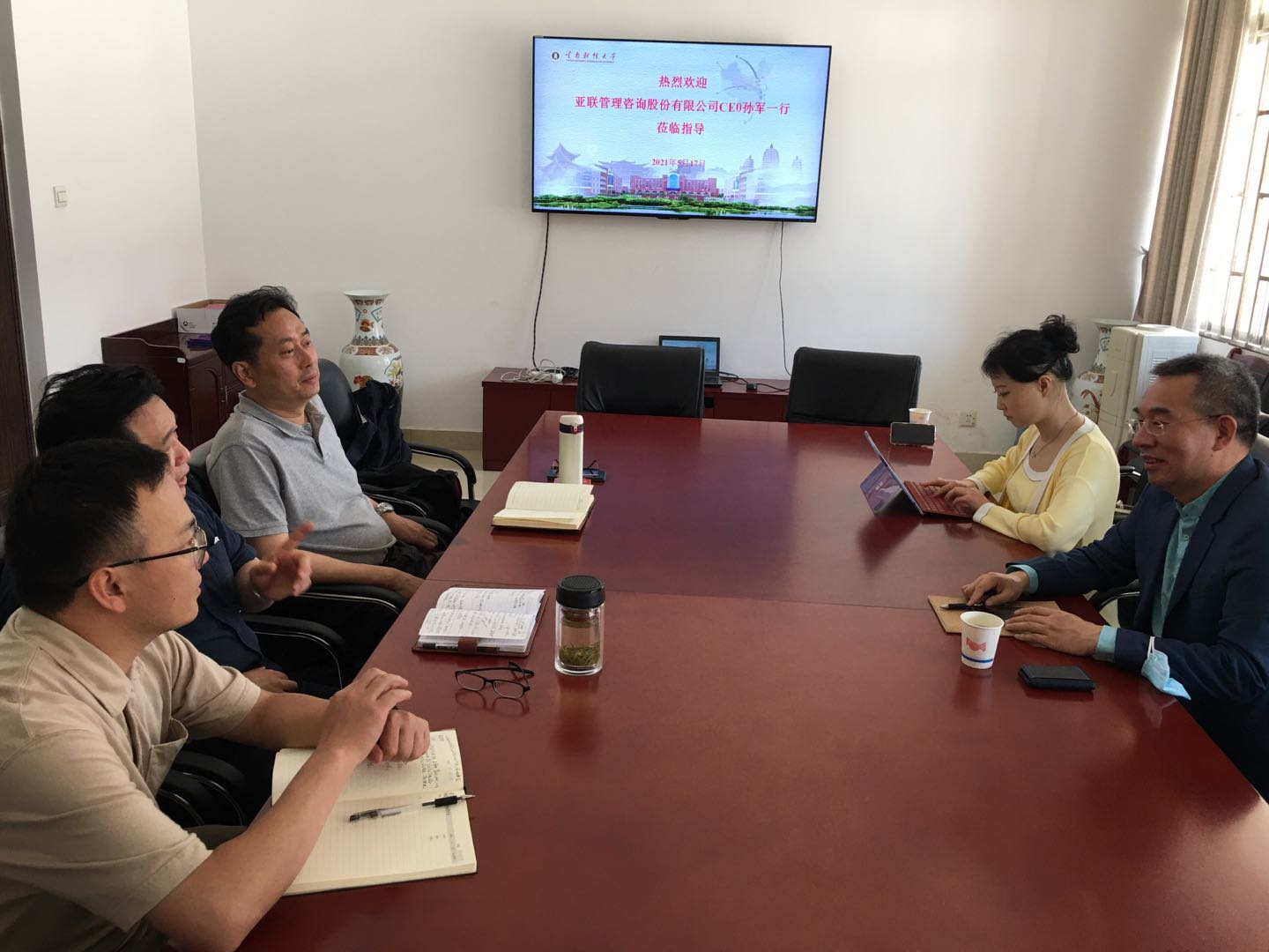 5月17日,亚联管理咨询股份有限公司CEO、亚联金融研修院副院长孙军一行到金融学院调研,就学院中国地方金融研究中心协同创新与运行机制进行了深入、广泛地交流讨论。学院院长熊德平,副院长李江城、杨国辉和夏蜀老师参加了此次交流会。