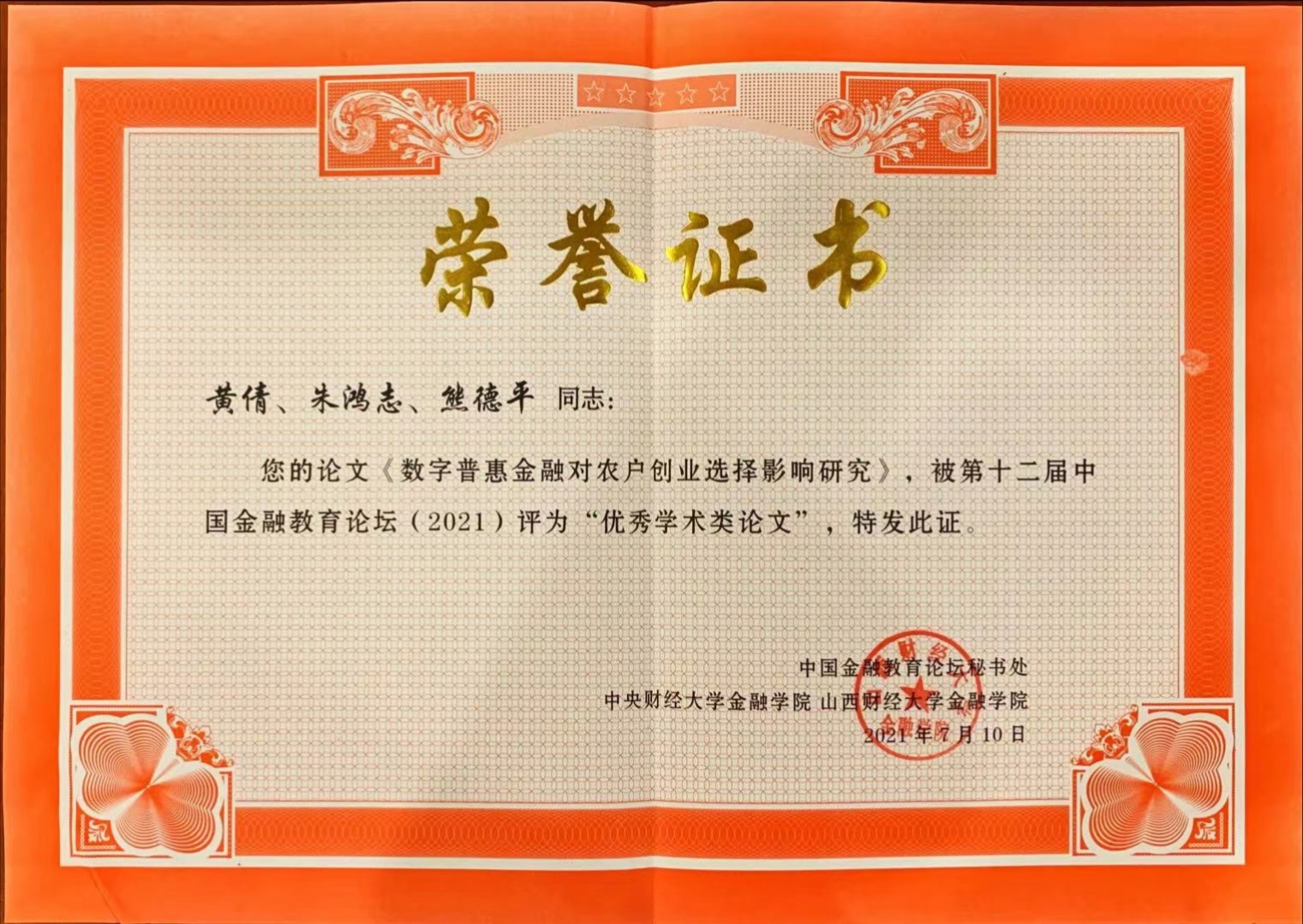 马彧菲,黄倩老师,以及硕士研究生陈昱燃和盛龙翠同学分别报告了各自参会论文,黄倩等撰写的论文获论坛优秀论文奖。论坛期间,我院参会代表还就金融学一流专业建设与兄弟高校代表进行了广泛深入的交流与探讨!