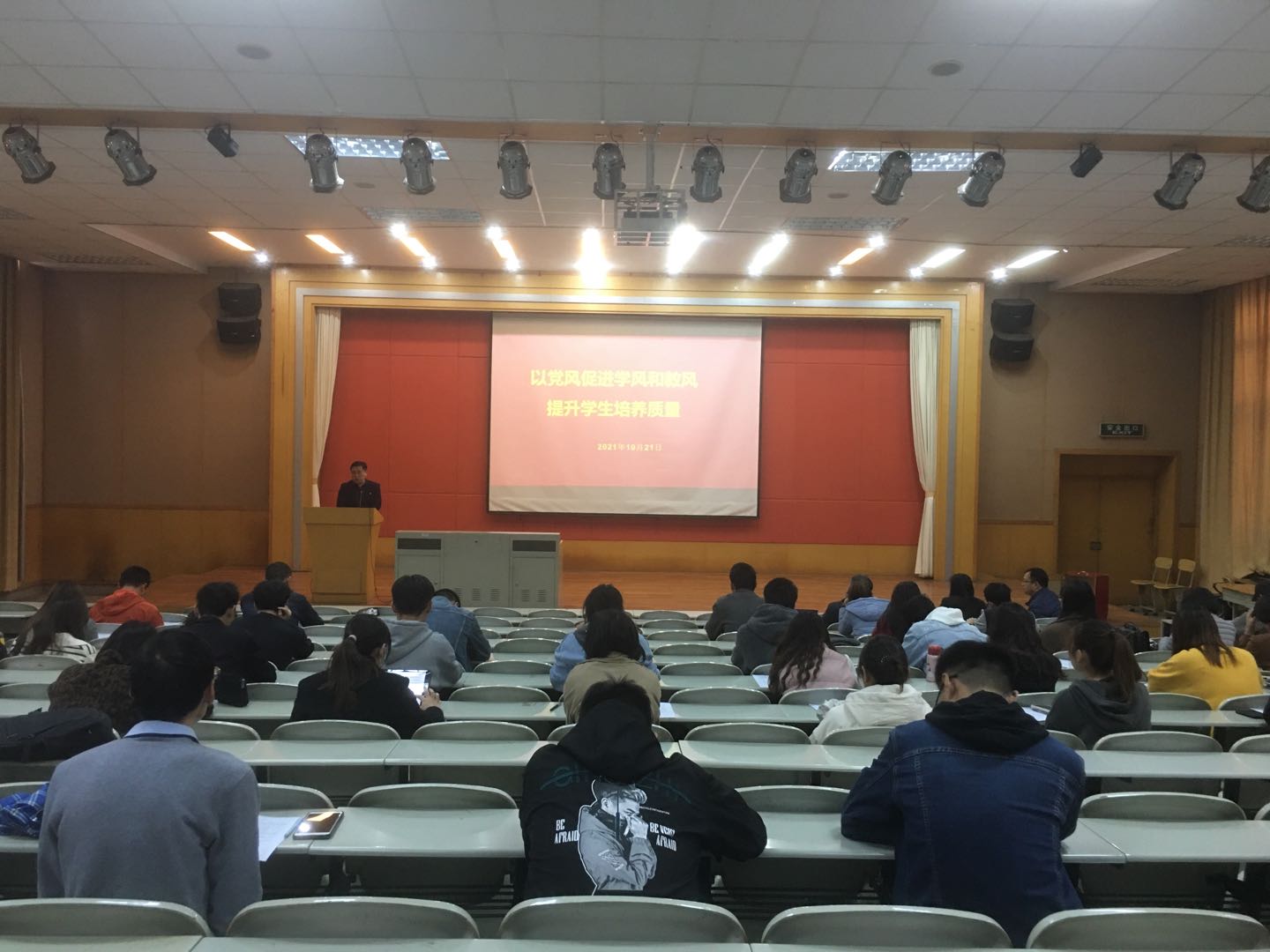 为进一步在我院营造良好的学习氛围,进一步加强我院的学风、教风建设,提高师生党员的先锋模范作用,提升学生培养质量。10月21日中午,学院院长熊德平在凌云楼北附101教室为全院师生以“党风促进学风和校风建设,提升学生培养质量”为主题讲授党课。学院全体师生党员参加学习。