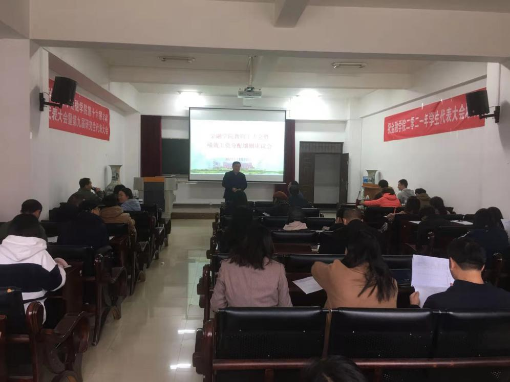 11月12日中午13:00,金融学院在博远103会议室召开教职工大会暨绩效工资分配细则审议会。学院院长熊德平主持会议。会议主要内容为审议《金融学院绩效工资分配实施细则》。