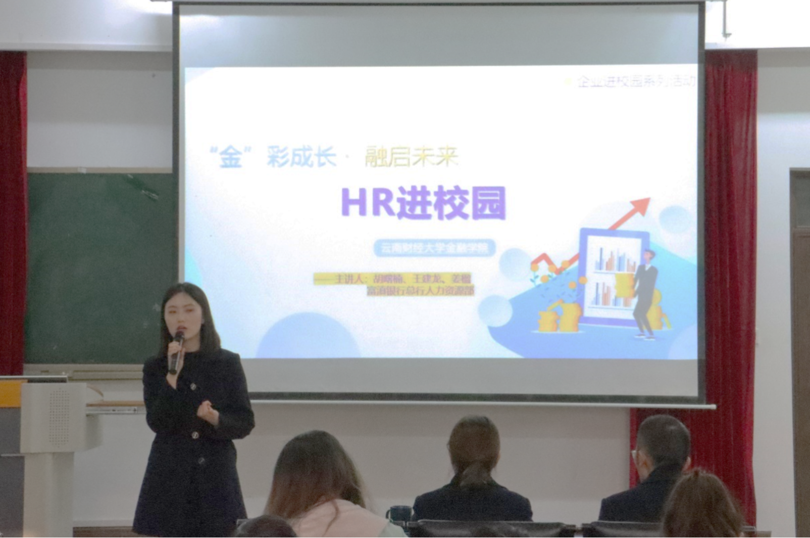 2021年12月17日开展了首次活动,学院邀请富滇银行总行人力资源部到校开展“银行HR进校园”讲座。本次活动由学院党委副书记汪薇萍主持,学院18、19级学生代表参加。