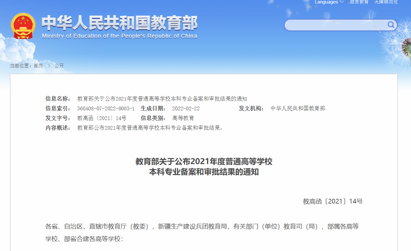 近日,根据《教育部关于公布2021年度普通高等学院本科专业备案和审批结果的通知》(教高函〔2021〕14号)文件,我院2021年申报的金融科技本科专业成功获批,为云南省首个金融科技本科专业。金融学、保险学和投资学等三个专业二学位成功备案。金融科技专业将于2022年秋季正式招生,学制4年。金融科技专业授予经济学学位。