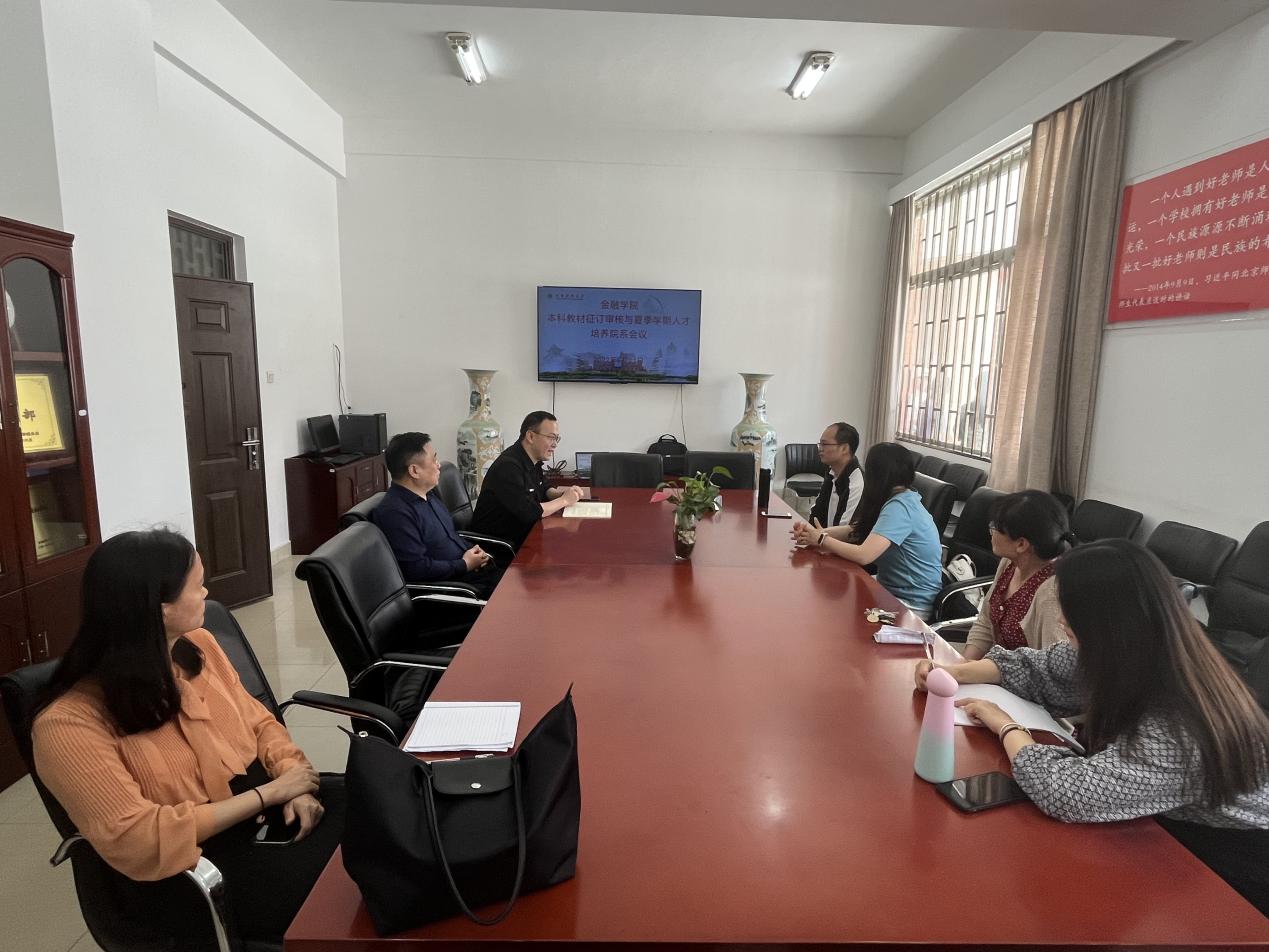 2022年6月21日上午,金融学院在博远楼111会议室召开本科教材征订审核与夏季学期人才培养院系会议。本次会议参会人员为:熊德平院长、李德清书记、李江城副院长、系主任马彧菲、陈晓丹和李云仙,副系主任赖付军和王婉青老师。