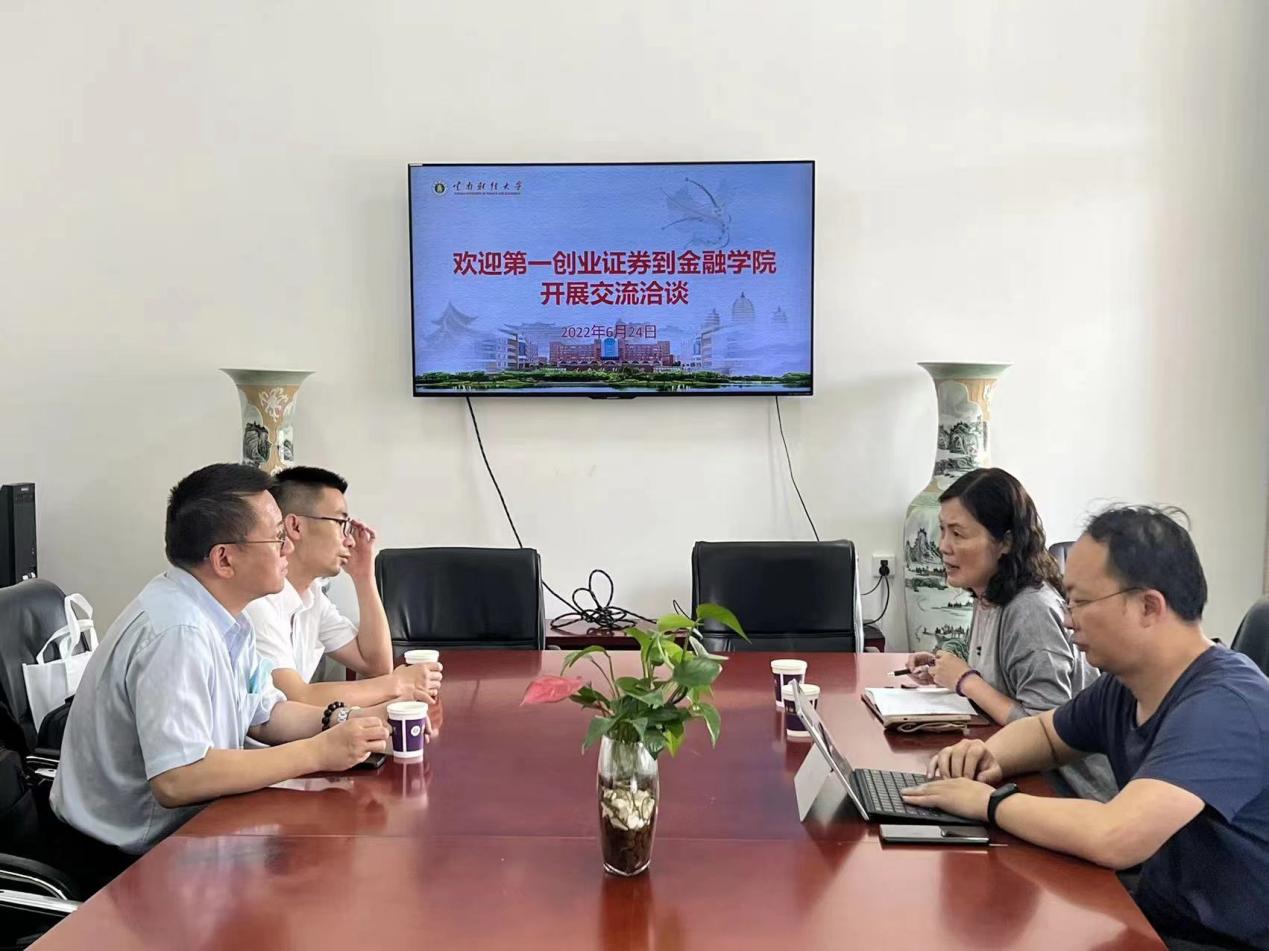 “访企拓岗”行动是学校强化校企衔接、深化校企合作的重要途径,也是学校提升人才培养质量、促进毕业生高质量就业的迫切需求。6月24日,第一创业证券股份有限公司相关负责人陈映南、张展鸿到WilliamHill官网金融学院,与学院党委副书记汪薇萍,学生管理科科长郭良骥进行访企拓岗交流座谈。