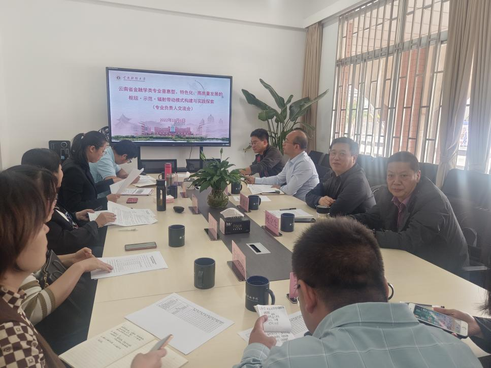 基于云南省教育厅2022年立项教学成果培育项目“云南省金融学类专业普惠型、特色化、高质量发展的枢纽·示范·辐射带动模式构建与实践探索”,2022年10月6日项目主持人金融学院熊德平教授组织召开了全省金融学专业负责人专业建设交流讨论会。项目参加单位的各位专业负责人针对云南省金融学类专业发展不平衡、不充分和同质化问题,立足项目申请单位金融学类专业建设优势及其在省内国内的地位,围绕面向新时代高质量金融人才需求, 探索“学科平台+专业联盟”支撑“专业+模块”金融学类专业人才培养模式,创新“上、下、内、外”联合融合的云南金融教育教学联盟体制机制与模式,主动发挥枢纽·示范·辐射带动作用,推动云南省金融学类专业普惠型、特色化、高质量、可持续发展进行了充分的交流和讨论。