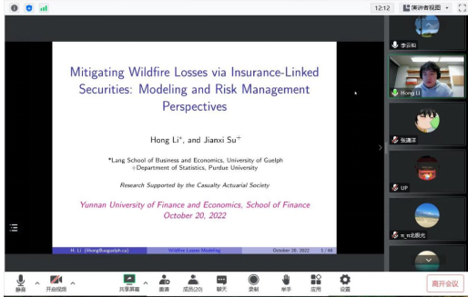 2022年10月21日上午9:00,加拿大圭尔夫大学 Gordon S. Lang 商学院副教授李泓应邀为金融学院做学术讲座,讲座主题为“Mitigating Wildfire Losses via Insurance-Linked Securities:Modeling and Risk Management Perspectives”。