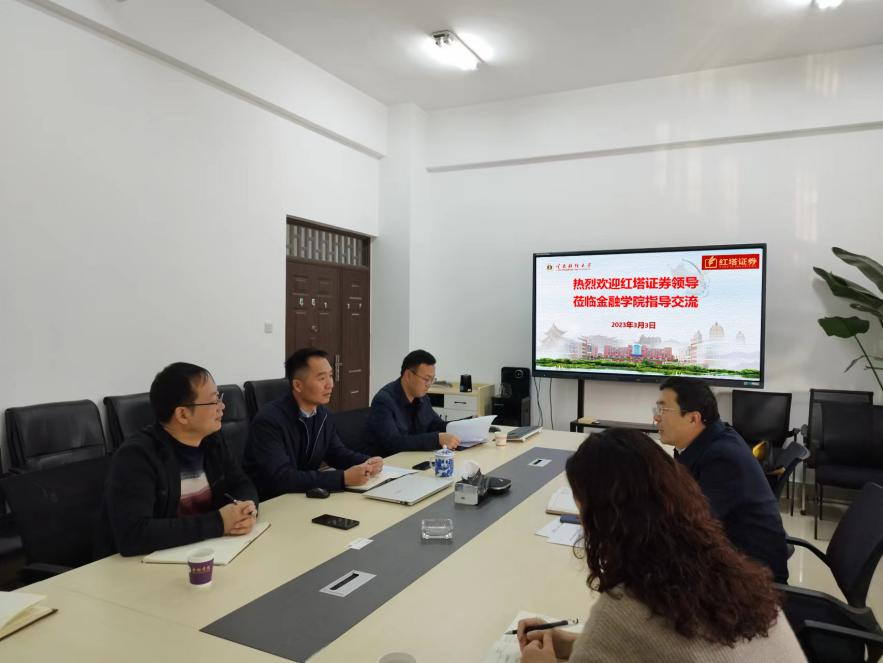 2023年3月3日上午,红塔证券财富管理中心总经理李军、投资者教育主管陈方到学院商谈合作事宜。双方前期已经签署了战略合作协议,此次主要就证券期货投资者教育合作协议、实习基地落地、课题研究、就业帮扶等内容进行深入交流。
