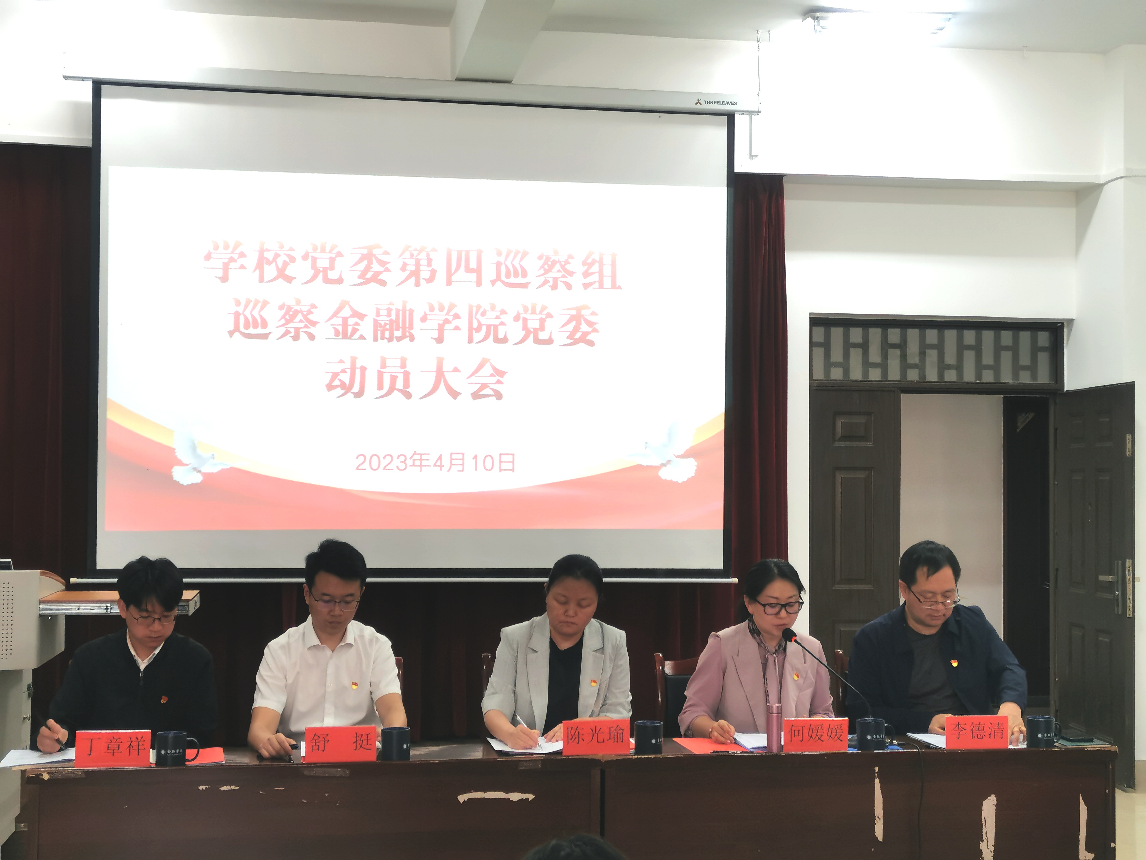 根据学校党委工作部署及巡察工作领导小组有关安排,4月10日党委第四巡察组到金融学院党委召开巡察工作动员大会。学校党委副书记、巡察工作领导小组副组长陈光瑜,党委第四巡察组全体成员,金融学院全体教职工和学生代表70余人参加会议。金融学院党委书记李德清主持会议并作表态发言。