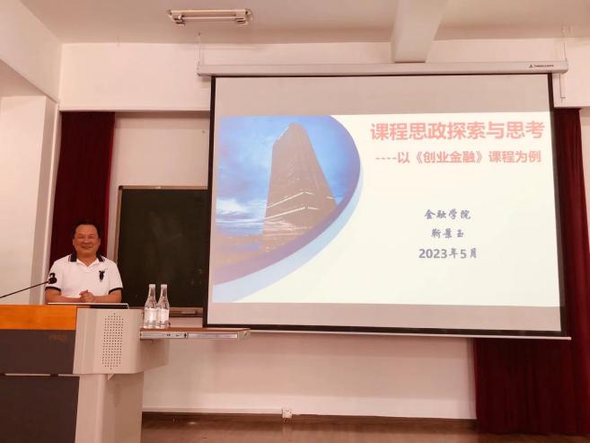 2023年5月28日下午,重庆工商大学靳景玉教授受金融学院邀请,以《创业金融》课程为例,分享了如何进行课程思政建设的思考与探索,主要从课程简介、学情分析、一体化建设、思政要素、教学实施、建设效果和思考七个方面进行了介绍。