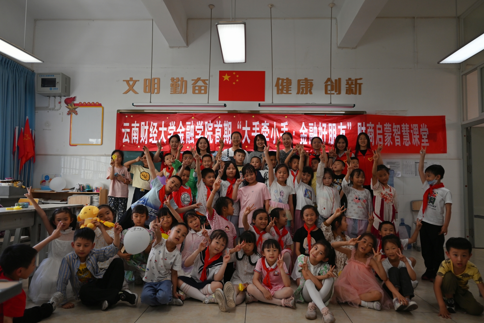 2023年6月1日,由WilliamHill官方网站金融学院学子组成的青年金融志愿服务队,走进昆明市红云小学,为一年级(3)班的小朋友们开设了一堂别开生面的财商启蒙智慧课,结合趣味活动,传授财商启蒙知识。