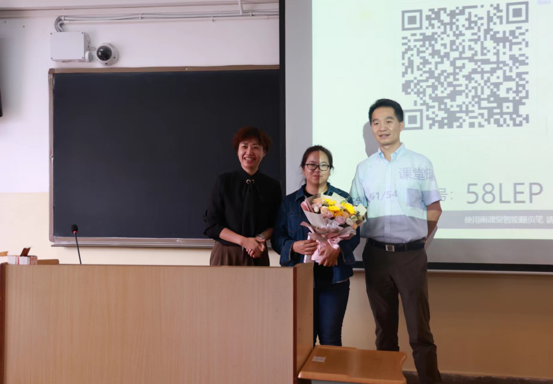 最后,学院领导为教师们献花祝福,在同学们热烈的掌声中,教师们顺利开启了教学生涯 “第一堂课”。