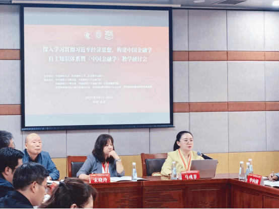 为加强金融学专业建设、提升核心课程教学质量,学院副院长马彧菲,以及教师梁隆斌、王婉青组成团队,应邀赴北京参加2025年9月27日至28日由中央财经大学、西南财经大学、高等教育出版社主办的“深入学习贯彻习近平经济思想、构建中国金融学自主知识体系暨《中国金融学》教学研讨会”。