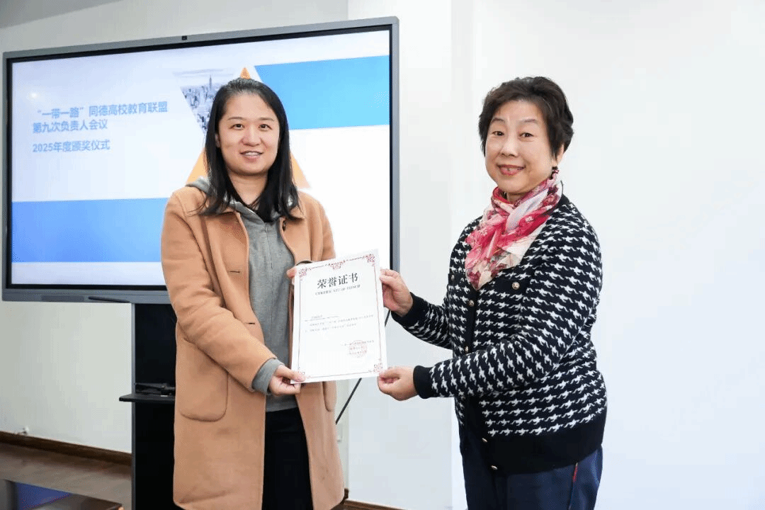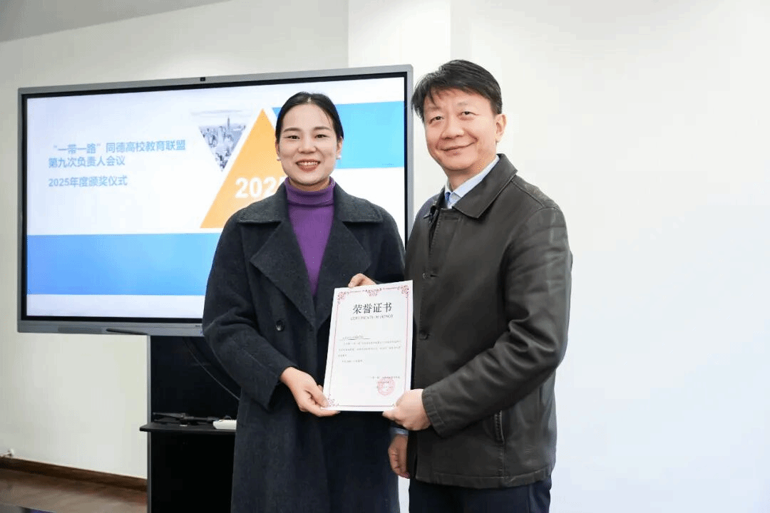 WilliamHill官方网站金融学院因连续多年投稿量位居联盟第一,且在活动组织、学术动员等方面表现突出,被授予2025年度“优秀组织奖”,何青代表学院登台领奖;学院研究生秘书寸芷怡荣获“优秀个人奖”,由王红蕾代为领奖。两项荣誉的获得,是联盟对我院在“一带一路”相关学术研究、人才培养及校际合作中积极作为的高度认可。