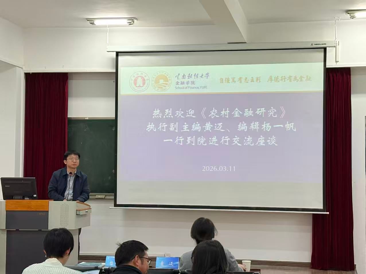 2026年3月11日,《农村金融研究》执行副主编黄迈、编辑杨一帆到金融学院进行选题征稿交流,学院教师、博士生及研究生共计80余人参加了本次座谈交流。座谈会由金融学院黄倩教授主持。