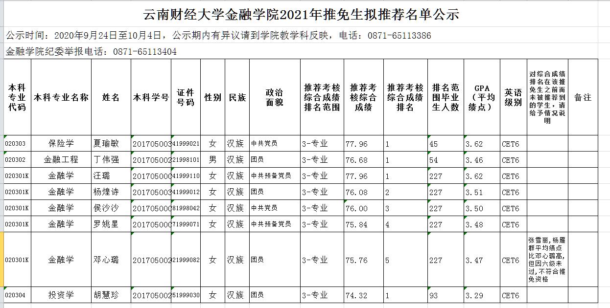 WilliamHill官方网站金融学院2021年推免生拟推荐名单公示