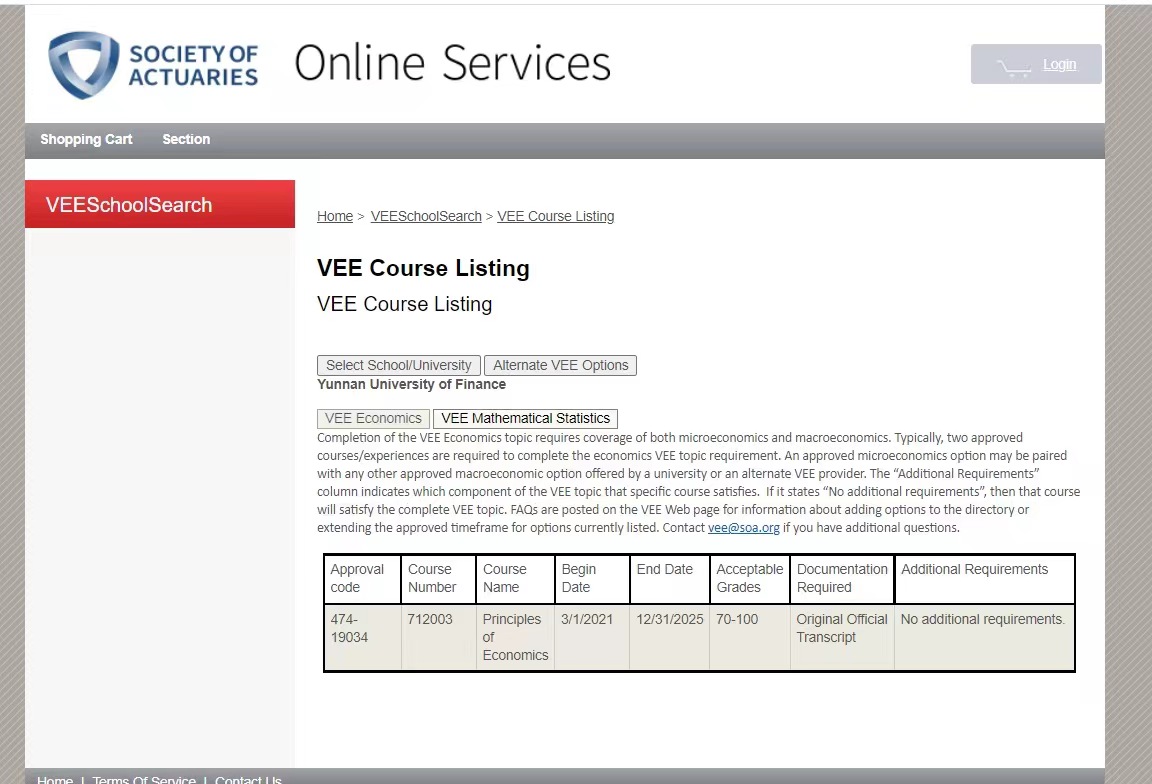 2022年3月,我院精算学专业申请的北美精算师协会(SOA)的VEE课程(Economics, Mathematical Statistics)抵免认证通过审批,精算专业同学修过相关课程即可申请免试抵免SOA的对应VEE课程。