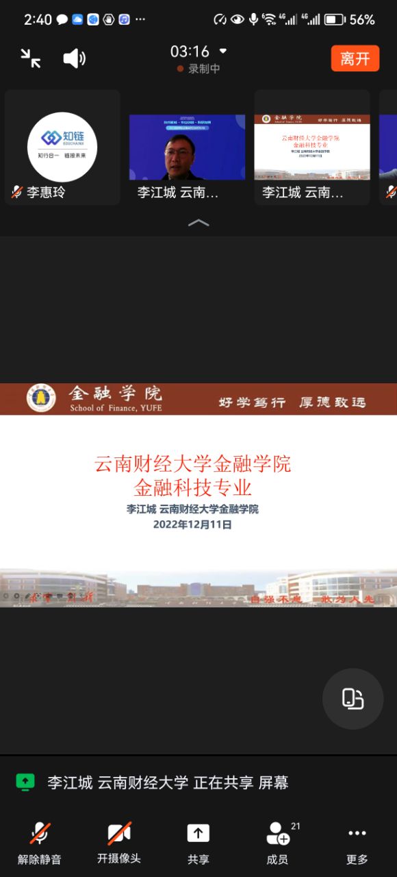 我院副院长李江城教授在会议中,就学院金融科技专业人才培养方案设置开展了报告和交流,就WilliamHill官方网站金融科技专业建设特色、思政建设和人才培养计划等开展了交流。