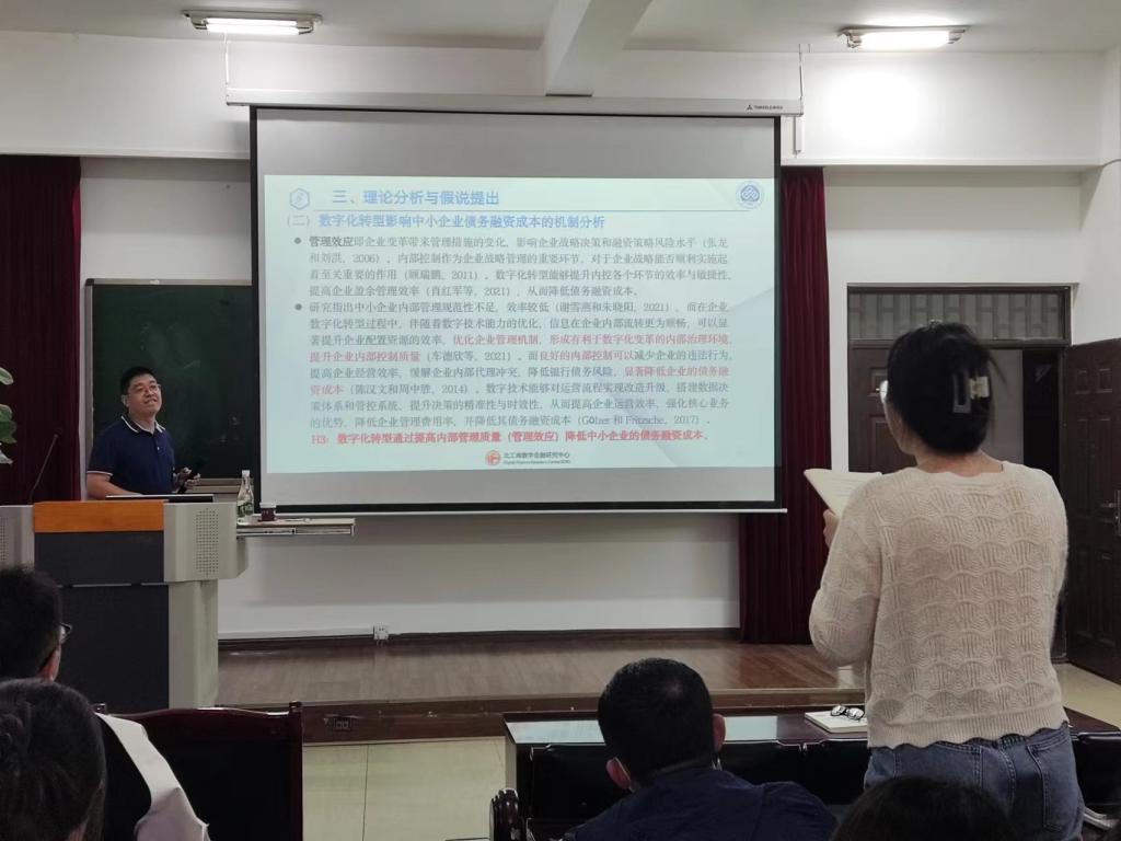 讲座中,张正平围绕论文关于问题的提出、文献综述与研究创新、理论分析与假说、研究设计、实证结果分析、结论与启示等六个部分展开。他提出数字经济发展规划要求企业加快数字化转型,中小企业是我国经济社会发展的主力军,数字化转型可能成为中小企业突破融资瓶颈的新途径;数字化转型主要通过减少信息不对称、提高内部管理质量,进而降低中小企业的债务融资成本。本文可能的边际贡献在于,拓展了企业数字化转型的研究范围,丰富了中小企业债务融资成本的影响因素,深化了企业数字转型与债务融资成本关系的研究。