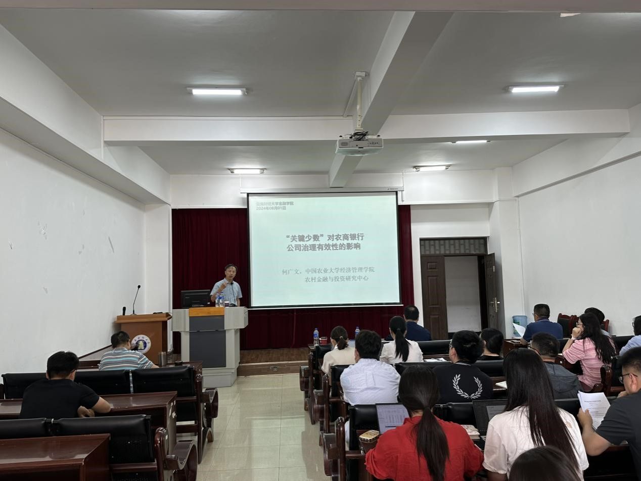 8月1日上午,金融学院在博远楼103会议室举办专题讲座,讲座邀请了中国农业大学经济管理学院何广文教授,主题为“中小银行公司治理有效性提升的思考”。讲座由金融学院名誉院长熊德平教授主持,学院部分教师、研究生聆听了本次讲座。