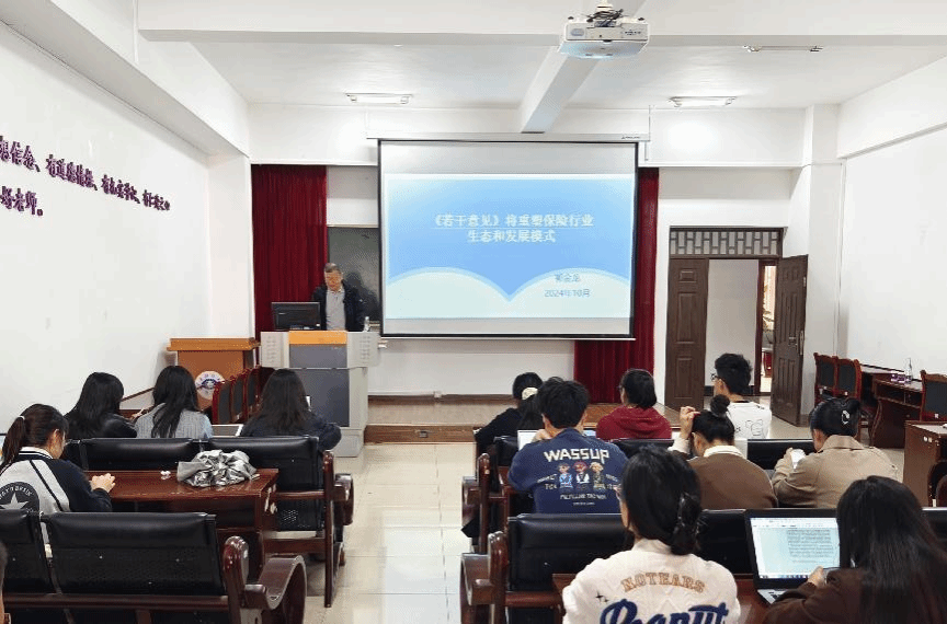 10月17日,应金融学院邀请,中国社会科学院研究生院、中国社会科学院大学郭金龙教授来我院做讲座,主题为“《国务院关于加强监管防范风险推动保险业高质量发展的若干意见》将重塑保险行业生态和发展模式”。讲座由学院院长周伟主持,学院部分教师及研究生参加了本次讲座。