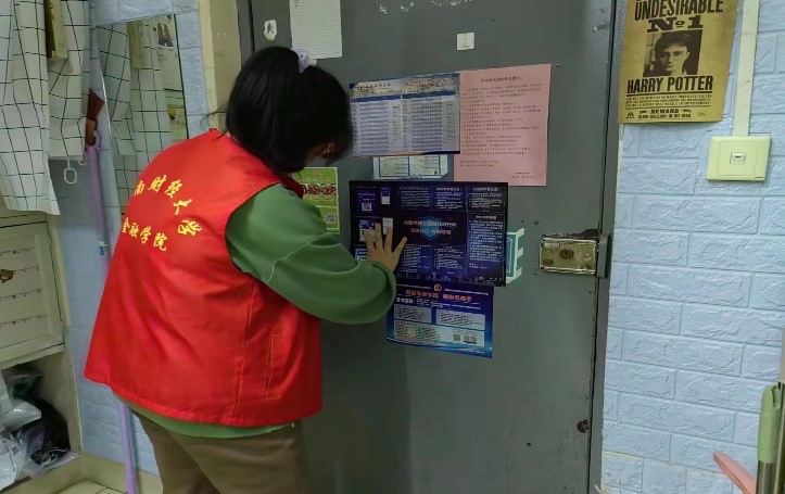 为进一步宣传防诈骗知识,提高同学们防诈意识,金融学院青年志愿者协会于2022年10月26日举办了“青风防诈志愿行”之防诈知识进宿舍活动。