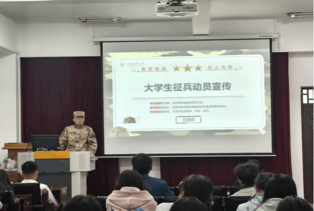 为进一步激发青年学子的爱国热情,鼓励优秀青年投身国防事业,积极响应国家征兵号召,金融学院于2025年11月10日在博远楼103举行新学年征兵动员宣讲,学院40余名学生积极参与。