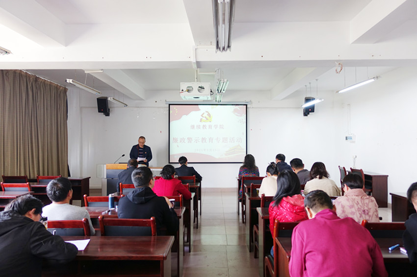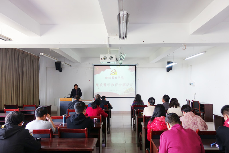 3月15日上午,继续教育学院在学院406报告厅开展廉政警示教育专题活动。会议由直属党支部书记傅银鹰主持。