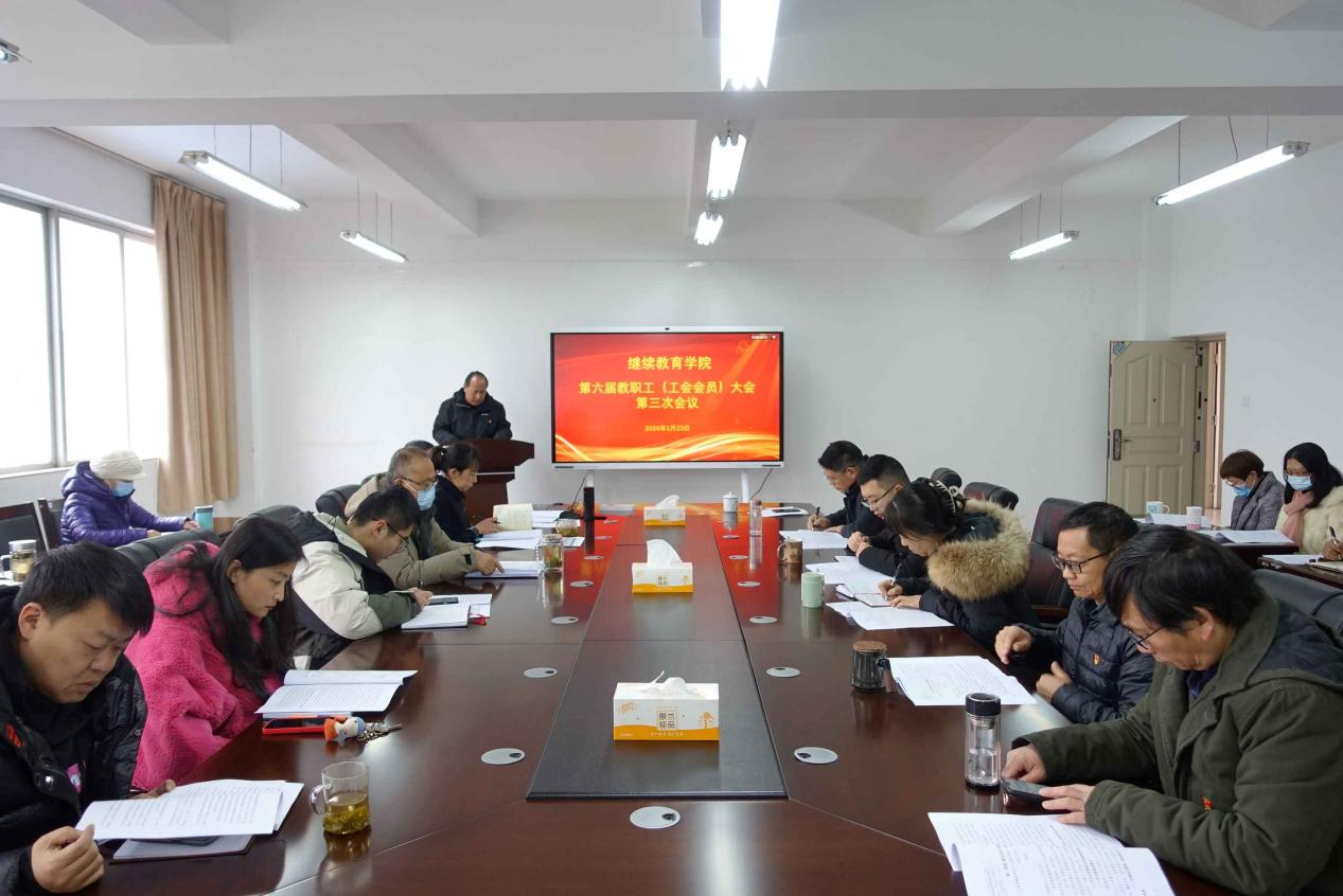 1月23日上午,继续教育学院在北院逸夫楼506会议室召开第六届教职工(工会会员)大会第三次会议,学院全体教职工(工会会员)参会。学院分工会委员钟艳主持会议。