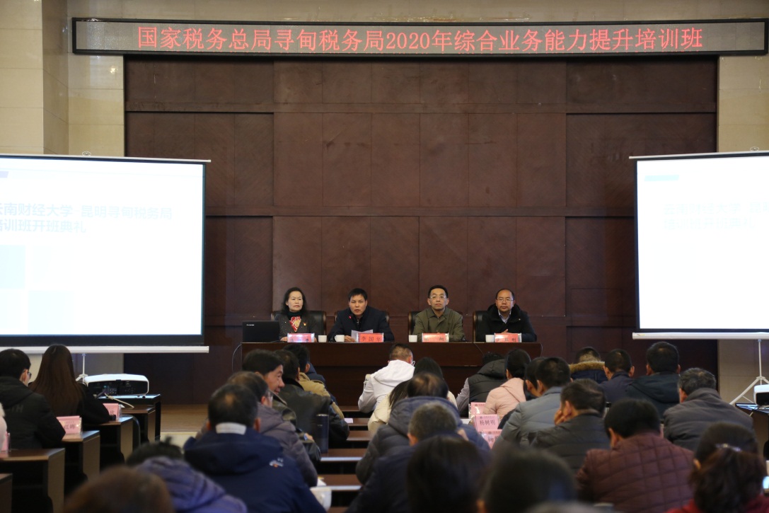 12月7日上午,由国家税务总局寻甸县税务局和WilliamHill官网继续教育学院合作举办的第二期寻甸县税务局2020年综合业务能力提升培训班开班仪式在博华楼报告厅举行。出席开班仪式的领导有寻甸县税务局党委书记、局长李国华,继续教育学院院长张炯、副院长吴红刚,以及73名培训学员参加开班仪式。开班仪式由继续教育学院直属党支部书记傅银鹰主持。