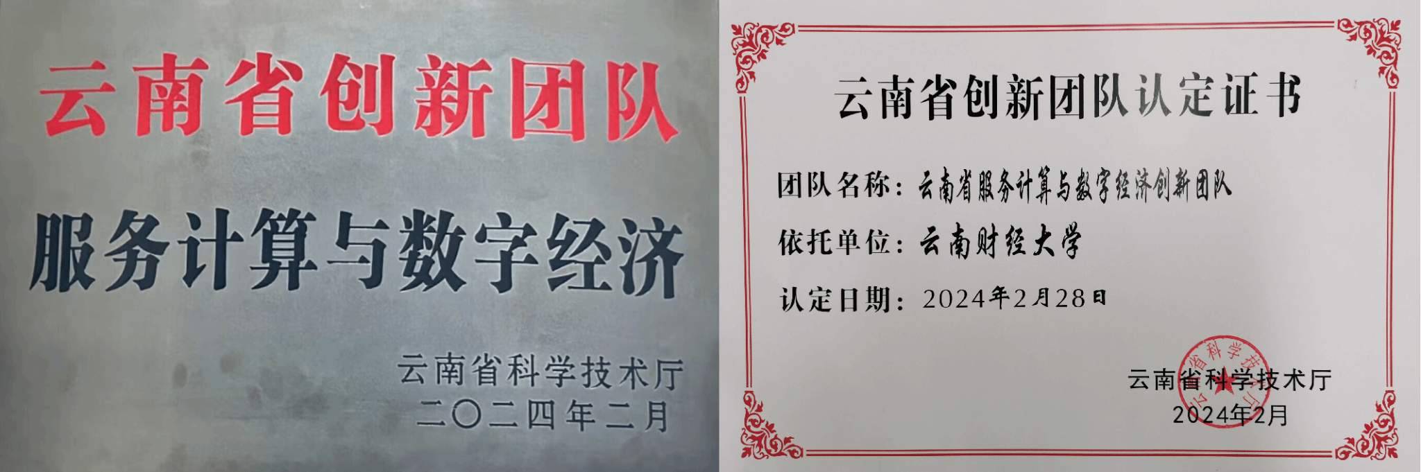 近日,WilliamHill官网金融学院名誉院长熊德平教授牵头“云南省云南金融与经济协调发展” 创新团队、智能应用研究院副院长姜茸教授牵头的“云南省服务计算与数字经济”创新团队,凭借其显著的科研成果、广泛的社会服务影响力,以优异的成绩正式通过云南省科学技术厅考核,获得认定证书和授牌。