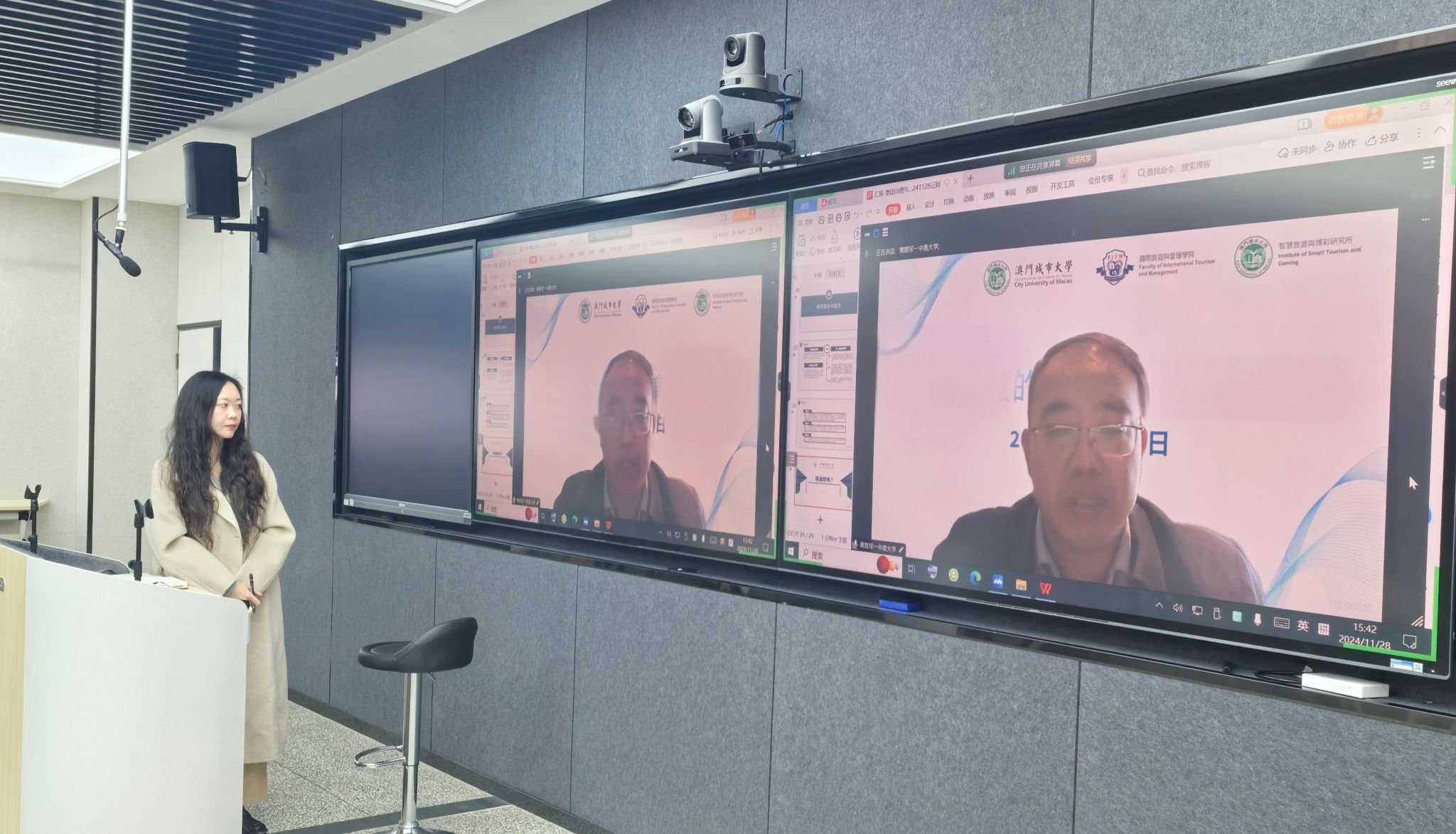 11月28日,学校举办第三期“云彩”学术讲坛之青年学者论坛,本期论坛聚焦于“集团治理与绿色技术创新:机制与内部传导路径”及“居民视角下民族村寨景社冲突的羊群效应研究”,由会计学院徐慧教授和旅游与酒店管理学院汪熠杰博士分别进行汇报,邀请上海商学院陈锦全教授、中南大学粟路军教授、昆明理工大学孙永河教授和云南民族大学杨立生教授担任点评专家,并分别对汇报论文进行深入点评,全校50余位青年学者和博士研究生参加了论坛。