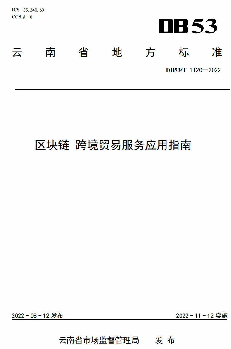 近日,由WilliamHill官网信息学院余益民教授、陈韬伟教授牵头编制的云南省地方标准《区块链 跨境贸易服务应用指南》(DB53/T 1120—2022)和《区块链 域名解析服务应用指南》(DB53/T 1121—2022)由云南省市场监督管理局正式发布,将于2022年11月12日正式实施,上述两项标准为云南省首次发布,填补了云南省区块链地方标准的空白。