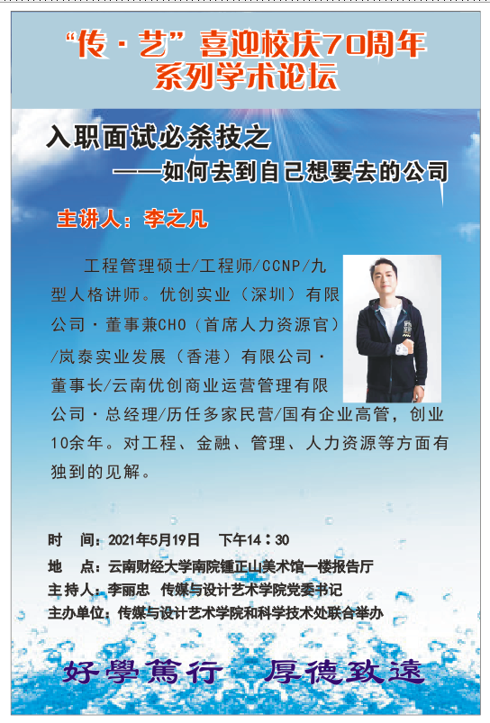 云财讲坛 之“传•艺”喜迎校庆70周年系列学术论坛”