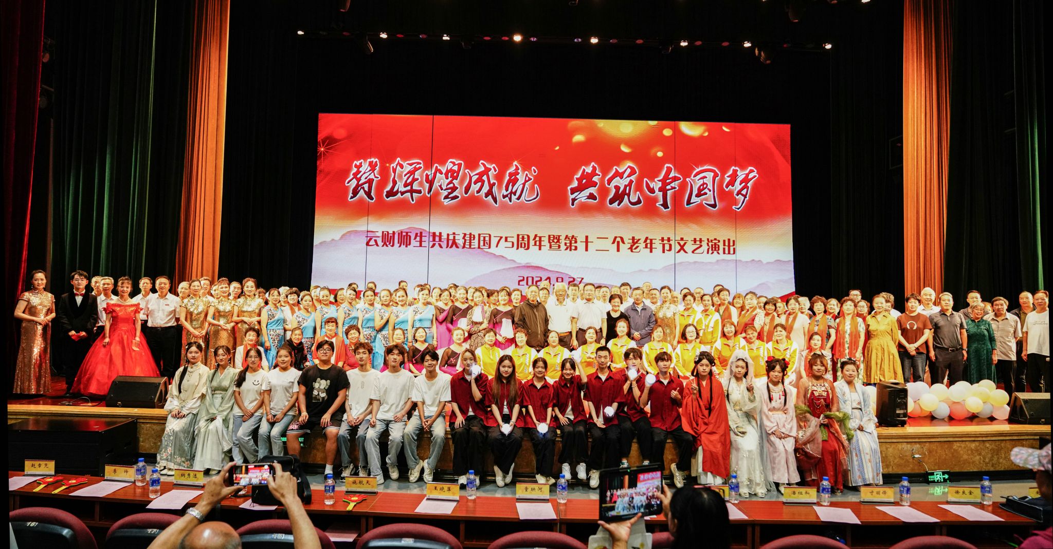 为庆祝新中国成立75周年,同时为云财离退休老同志送上第12个老年节祝福。2024927日,学校在北院汇文礼堂举办“赞辉煌成就 共筑中国梦”文艺演出,学校党委副书记施仲军、纪委书记、监察专员业光远、党委委员、宣传部长寸丽峰出席活动,学校相关职能部门、商学院、老教协、老书协负责人列席活动,老体协全体理事、部分退休职工以及各学院学生代表参加活动。